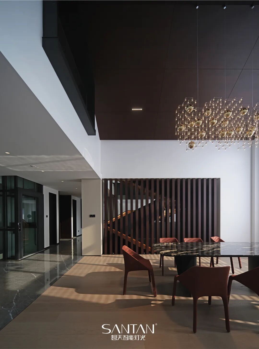 SANTAN Intelligent Lighting Integration Consisting of dots and lines, simplicity is endless. It integrates the lighting design of modern lines with the architectural space to create a healthy lighting for human settlements, showing a minimalist aesthetic style. ART Smart light source, ultimate quality. SANTAN lamps and lanterns add value and preciousness to the home environment, presenting an endless sense of visual extension, making the space a real art corridor. AVANT-GARDE Avant-garde art The new space sense of avant-garde art expressed by SANTAN Lighting not only shapes the light atmosphere of the artistic environment, but also properly mobilizes the modern elegant scene of the original space design, so that it can perceive the luxurious space of avant-garde art in the overall noble and atmospheric lighting atmosphere. MODERNISM Aesthetic Space Every decorative art light is highly functional. The overall shape of the lights selected in the project presents the retro shape of the industrialized era without losing the sense of modernity, making every environment like an art museum. SANTAN presents the display space and user experience in a narrative way, and conveys the concept of SANTAN brand, which continuously increases the readability and artistry of the space. LIGHT Optics and Aesthetics Stimulate the creativity of space, impeccable texture and quality, fashion and authoritative design, with a variety of exquisite creativity, will integrate high-quality light environment into daily life. The light aesthetic space created by SANTAN creates a new realm of minimalist and luxurious space with concise light templates, and endows the vitality of space art with a superior lifestyle of noble quality. ART DOCTRINE Modern Space Comfortable and gentle light combines the beauty of design with the practicality of function, and foils the quiet and elegant artistic atmosphere, which is also the unique light experience of the gallery brought by lighting design. STYLE Unique style, aesthetic decoration SANTAN Lighting transforms the bedroom and cloakroom into an artistic experience space, creating each space with modern lighting, and producing different functional space light experience, explaining the modern elegant aesthetic style of the mansion